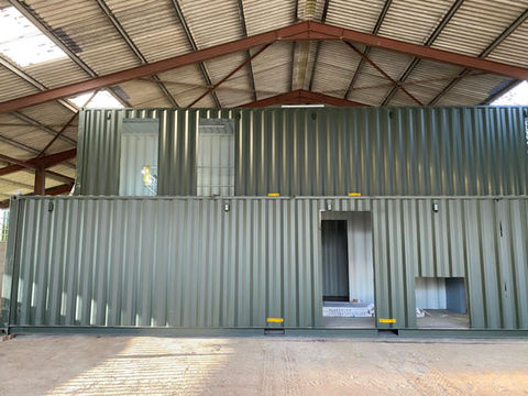 This training rigg can be heated up and filled with synthetic smoke. There is a warren of rooms over three floors built in kit form from 6 x 40ft containers with interconnecting security doors.